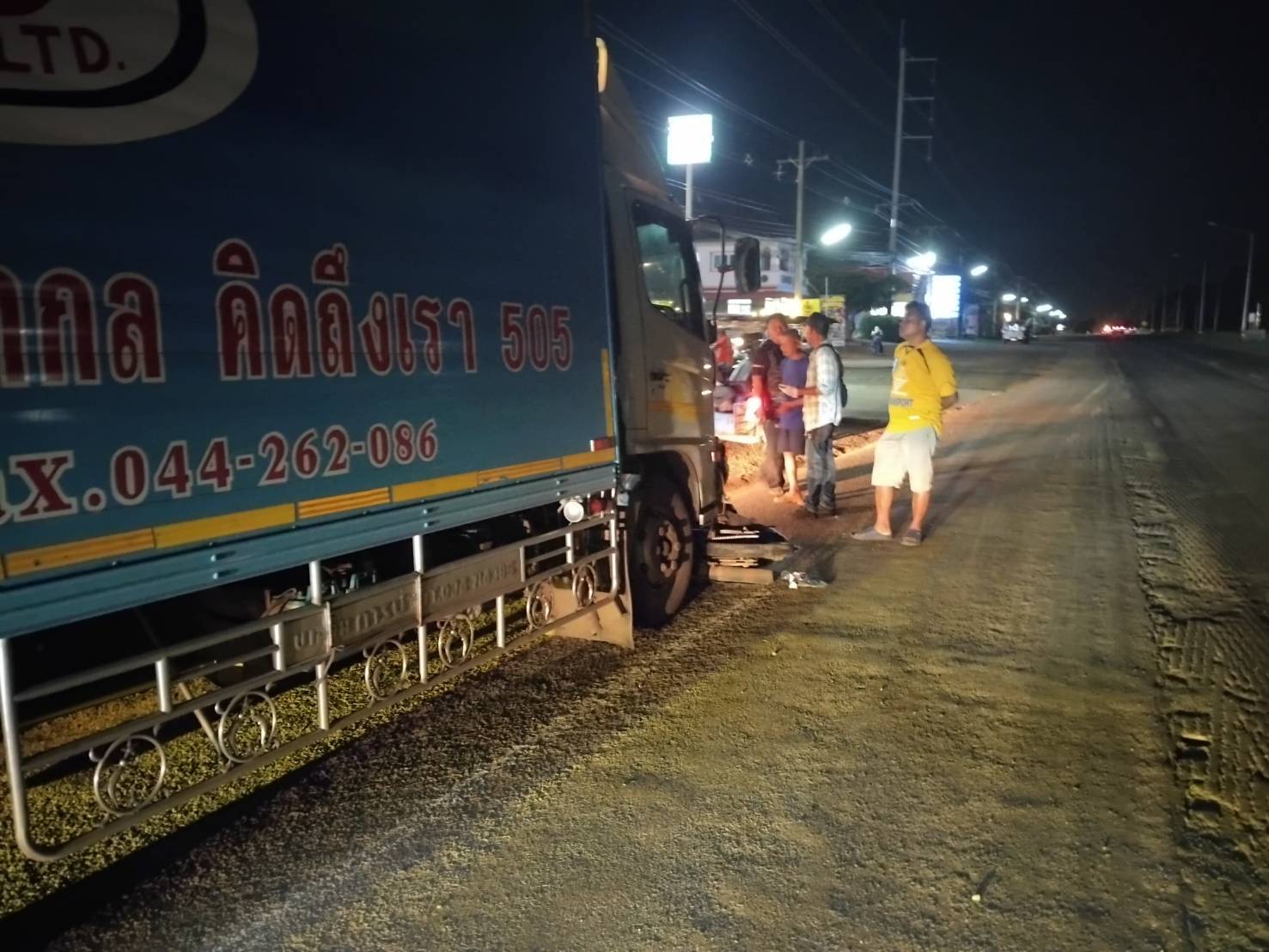 รถสิบล้อพ่วงบรรทุกมันสำปะหลังแห้ง ชนท้ายรถบรรทุก