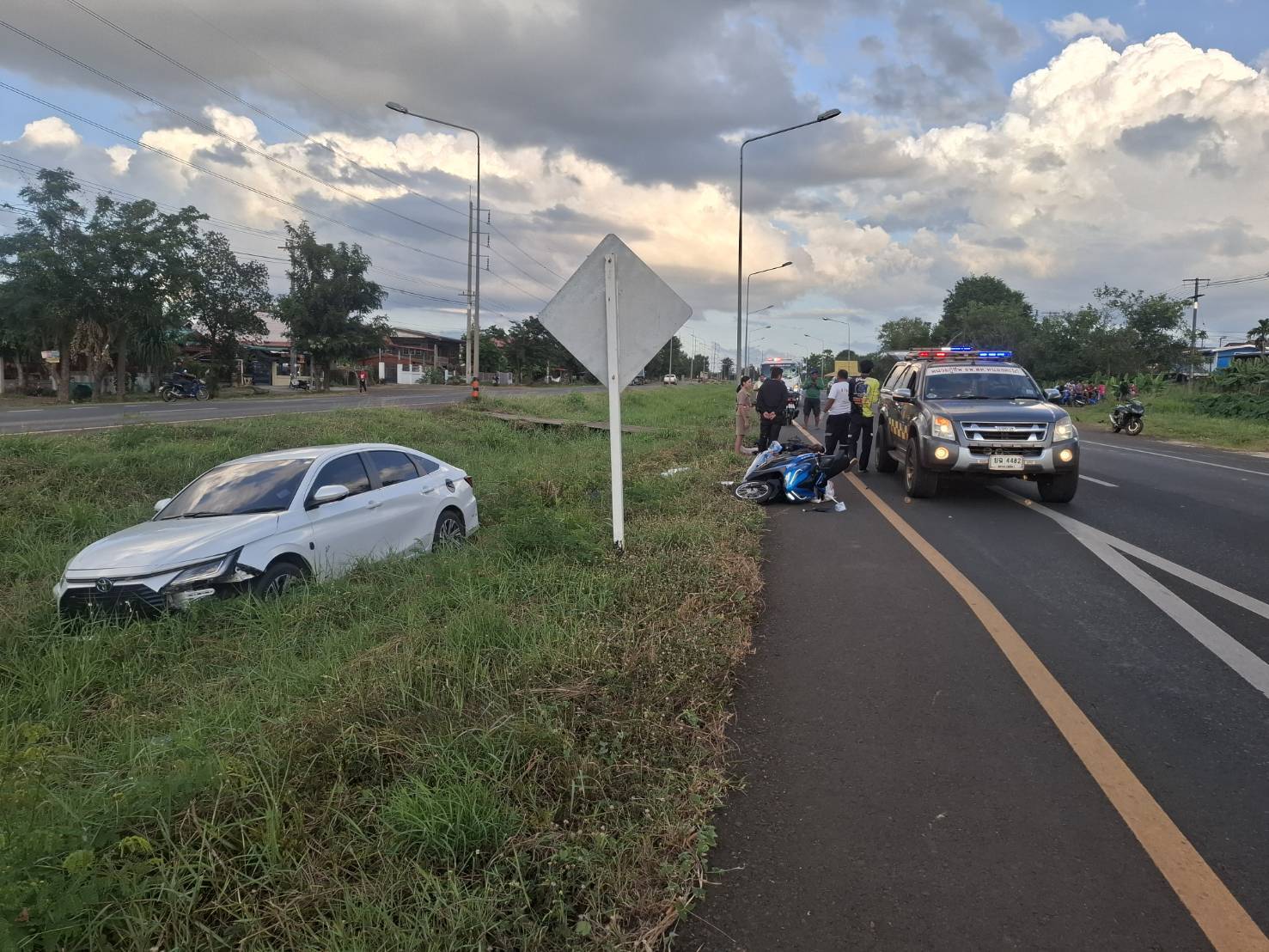 ออกตรวจที่เกิดเหตุ รถยนต์เฉี่ยวชนรถจักรยานยนต์