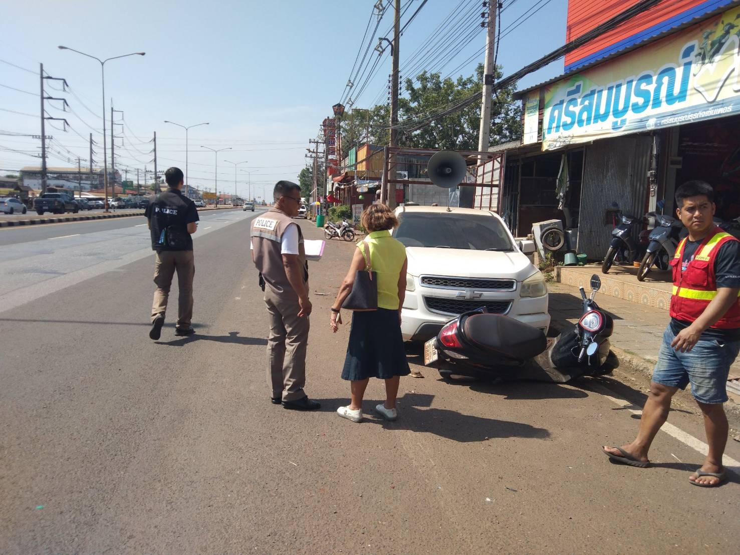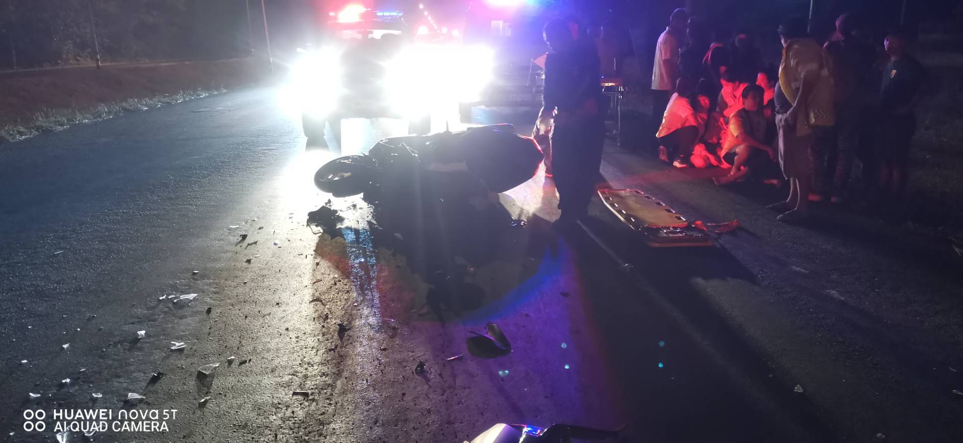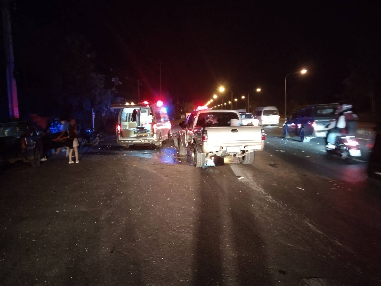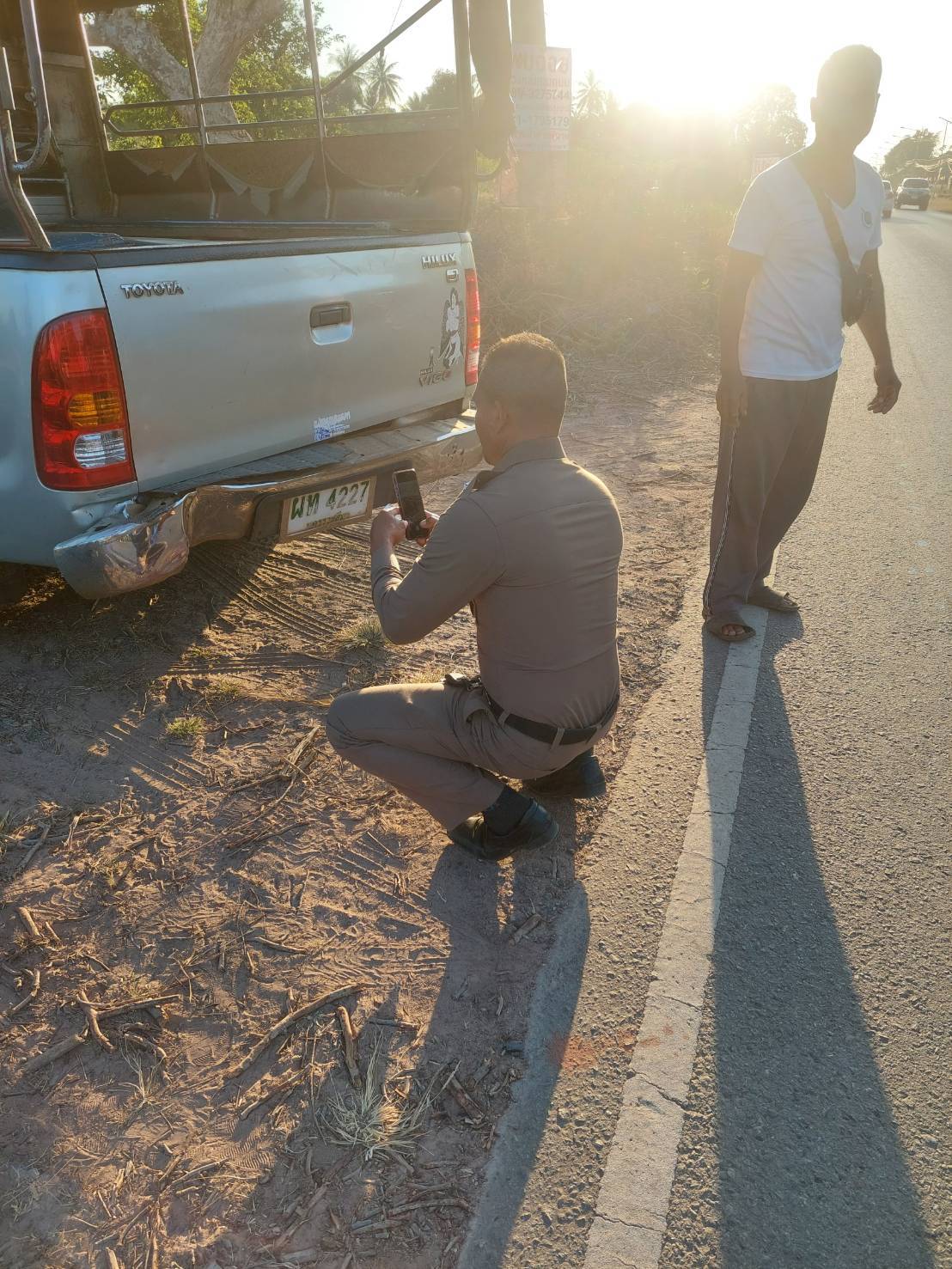 ออกตรวจที่กิดเหตุ จยย.ชนท้ายรถกระบะ