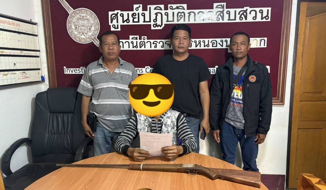 📌 ผู้ต้องหาชาย อายุ 31 ปรของกลางอาวุธปืนยาวแก๊บ จำนวน 1 กระบอก ข้อหาครอบครองอาวุธปืน