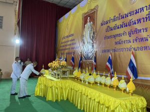 – เวลา 08.30 น. ร่วมพิธีถวายพานพุ่มดอกไม้ และถวายราชสักการะ ณ หอประชุมอำเภอหนองบุญมาก ต.หนองหัวแรต อ.หนองบุญมาก จ.นครราชสีมา