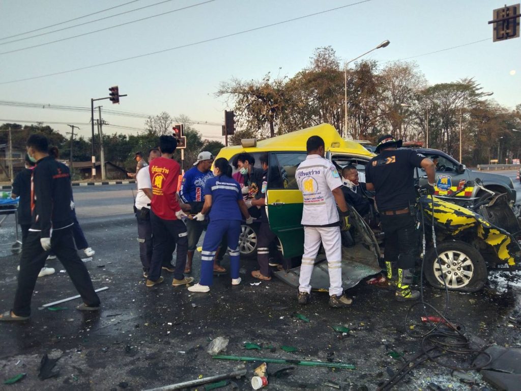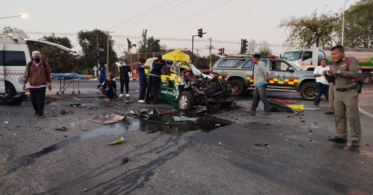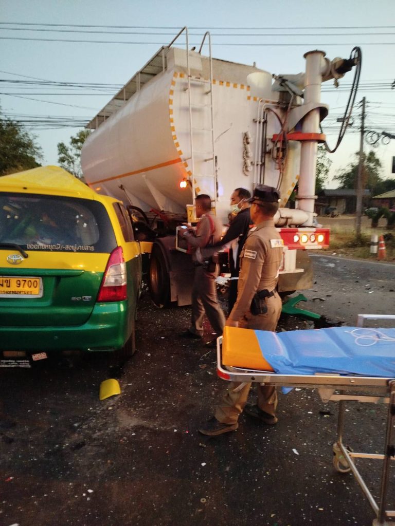 วันที่ 14 ก.พ.68 เวลา 06.31 น. ร้อยเวร 30 พร้อมด้วยพลขับ ร้อยเวร 60 สายตรวจจราจร ว.4 เหตุ ว.40 รถแท็กซี่เฉี่ยวชนกับรถพ่วงบรรทุกอาหารสัตว์ แยกสัญญาญไฟหนองตะไก้ ได้รับบาดเจ็บติดในรถ 4 ราย ไม่มีทรัพย์สินทางราชการเสียหาย