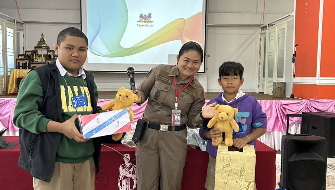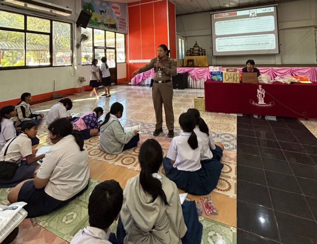 พ.ต.ต.หญิง สุภาพร เจาะนอก สวป.(ชส.) สภ.หนองบุญมาก รหัสแดร์ 15124 เข้าสอนนักเรียนตามโครงการการศึกษาเพื่อต่อต้านการใช้ยาเสพติดในเด็กนักเรียน (D.A.R.E.ประเทศไทย)