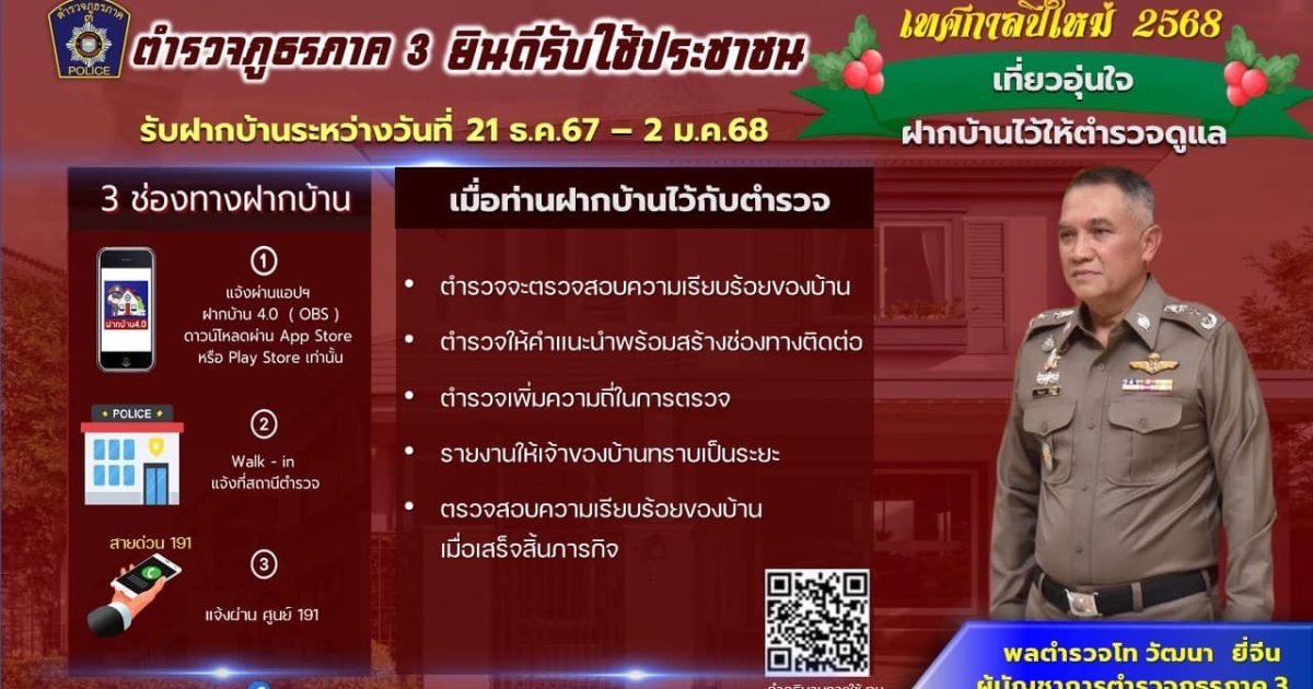เทศกาลปีใหม่ เที่ยวอุ่นใจ ฝากบ้านกับตำรวจ