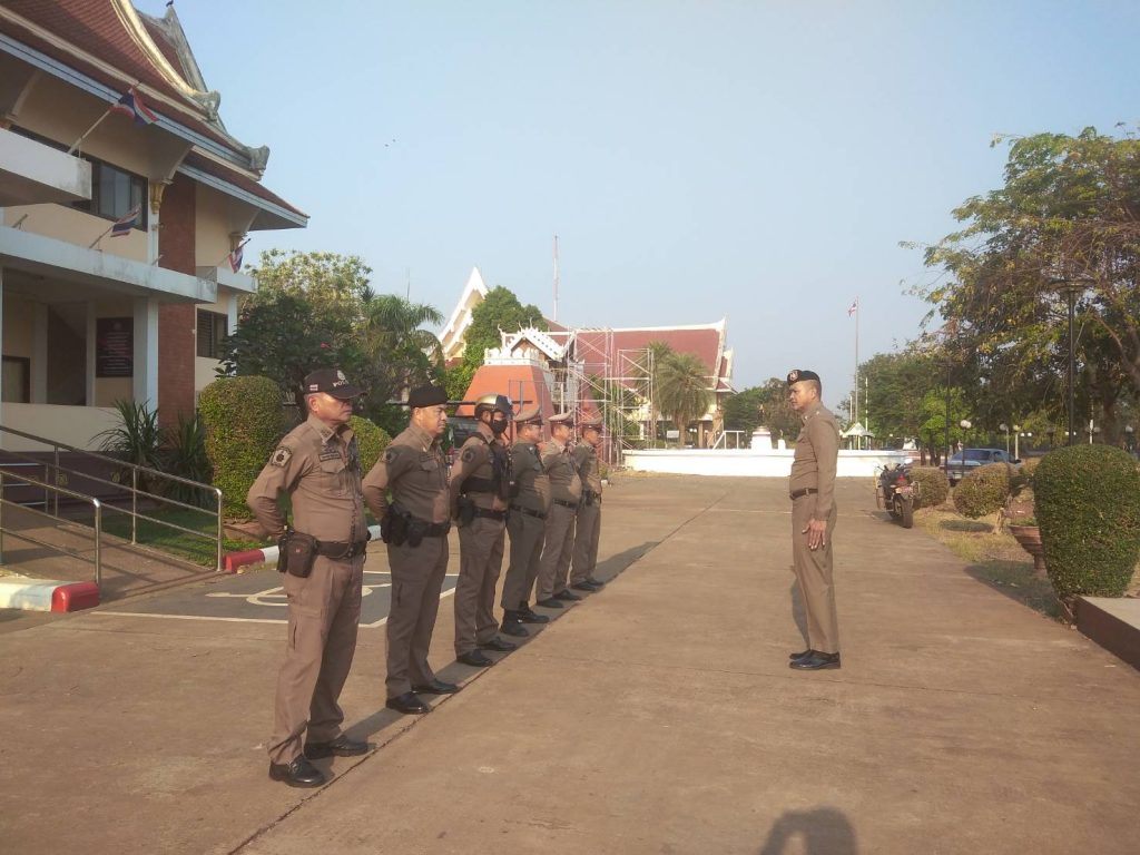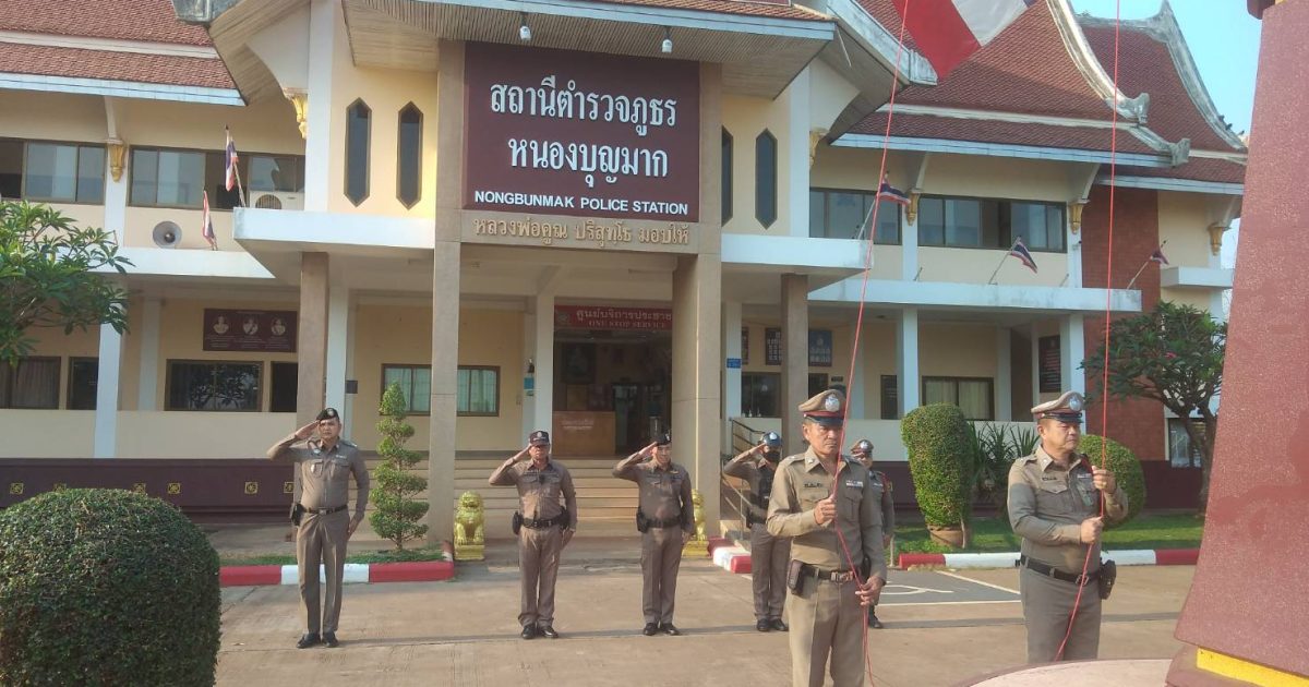 ภายใต้การอำนวยการของ พ.ต.อ.ธนภัทร เพชรอรุณ ผกก สภ.หนองบุญมาก มอบหมายให้ พ.ต.ท.อาวุฒิ อ่อนวรรณะ รอง ผกก.ป.สภ.หนองบุญมาก และ พ.ต.ต.วศิน ฉัตรสอน สวป.สภ.หนองบุญมาก เรียกรวมแถวหน้าเสาธง เพื่อเคารพธงชาติ สวดมนต์ไหว้พระ กล่าวอุดมคติตํารวจ และชี้แจงข้อราชการต่างๆ ดังนี้