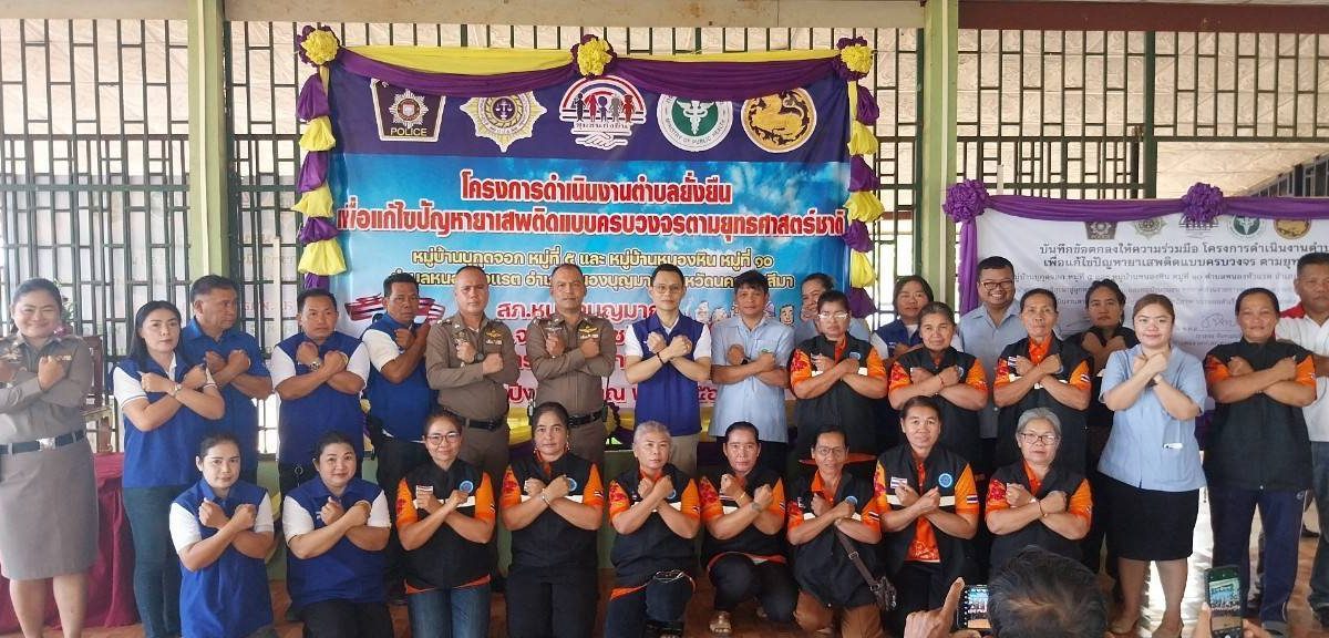 วันที่ 12 มีนาคม 2568 เวลา 09.00 น. นายพงศ์เทพ จันทร์นอก นายอำเภอหนองบุญมาก เป็นประธานในพิธีเปิดโครงการดำเนินงานตำบลยั่งยืน/ชุมชนล้อมรักษ์ เพื่อเเก้ไขปัญหายาเสพติดเเบบครบวงจรตามยุทธศาสตร์ชาติ ภูธรจังหวัดนครราชสีมา ปีงบประมาณ 2568 และการต่อต้านการทุจริต/การรับสินบน โดยมี พ.ต.อ.ชวภณ จันทเมนชัย ผกก.สภ.หนองบุญมาก เเละข้าราชการตำรวจ ชุดตำบลยั่งยืน สำนักงานสาธารณสุขอำเภอหนองบุญมาก รพ.หนองบุญมาก รพ.สต.ในพื้นที่ และ หัวหน้าส่วนราชการ ภาคเอกชน หน่วยงานภาคีเครือข่าย ผู้นำชุมชนอาสาสมัครชุมชน ประชาชน ร่วมพิธีเปิดโครงการ ณ ศาลากลางบ้านหนองหิน ตำบลหนองหัวแรต อำเภอหนองบุญมาก จังหวัดนครราชสีมา