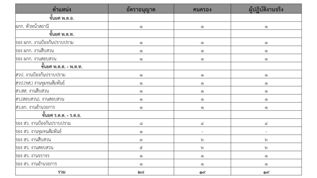 แผนผังโครงสร้างการแบ่งส่วนราชการของสถานีตำรวจ