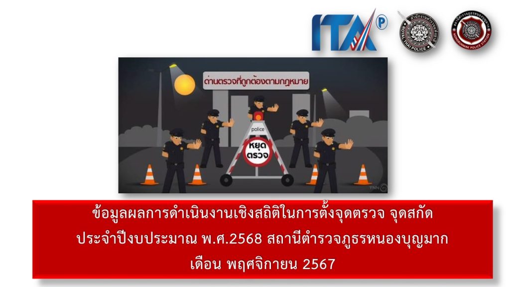 ในรูปแบบไฟล์ PDF คลิ๊กที่นี่ - ข้อมูลในการดำเนินงานเชิงสถิติในการตั้งจุดตรวจ จุดสกัด เดือน พ.ย. 67